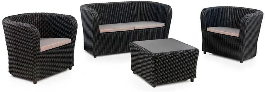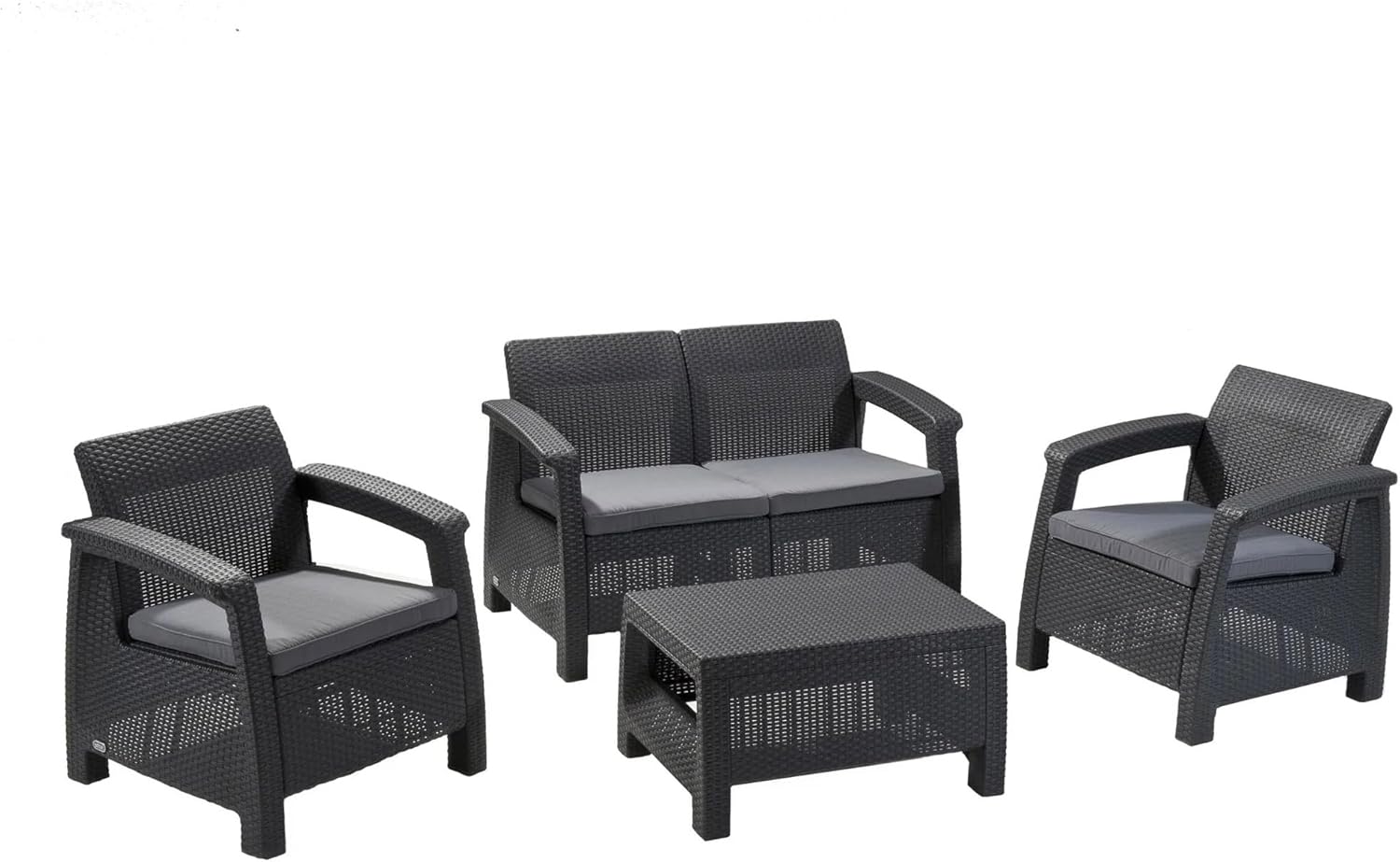 Keter Corfu Conjunto de jardín Exterior 4 plazas y Mesa con Cojines incluidos , Resina con acabado ratán plano, Color Grafito