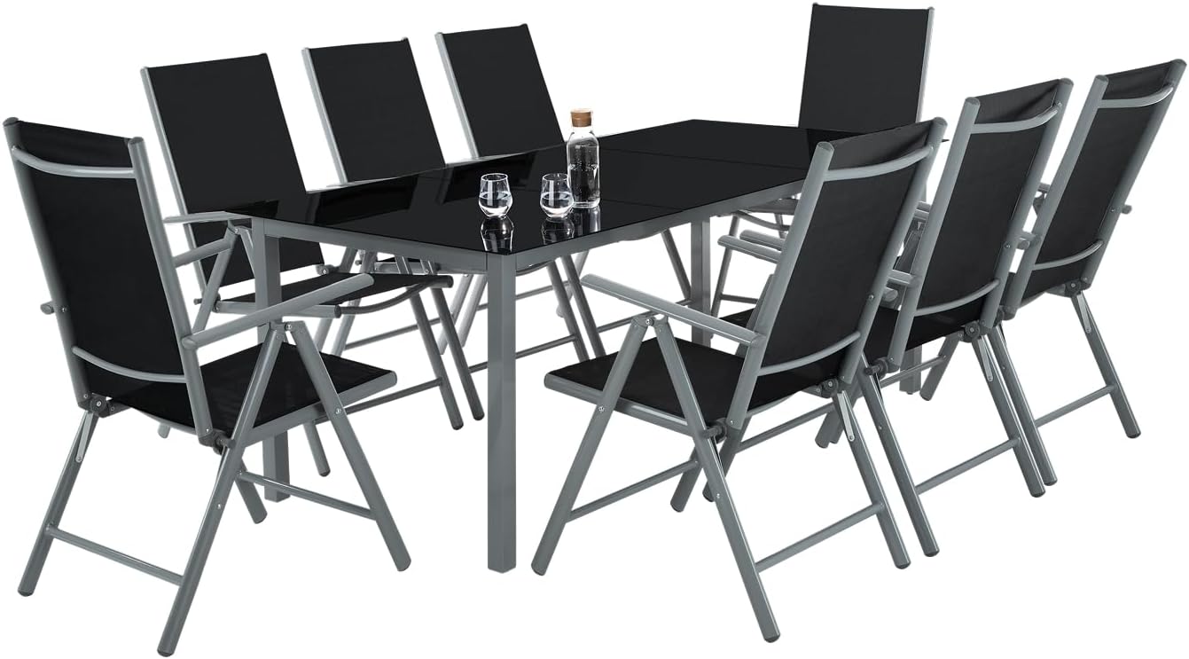 TecTake Conjunto Muebles Jardín Exterior 9 Piezas, Estructura de Aluminio, Mesa y Sillas Terraza Impermeables, Resistentes a Intemperie, Sillas Plegables y Reclinables, Tela Transpirable - Antracita