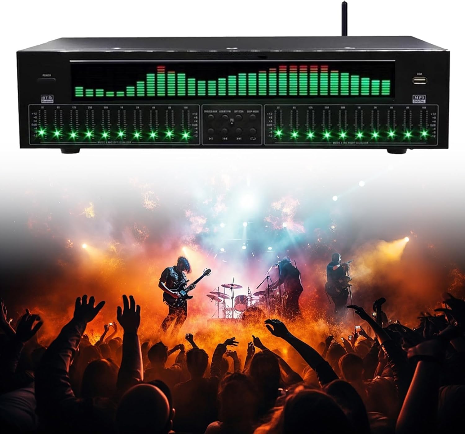 Ecualizador Gráfico De Audio Estéreo, Ecualizador Digital De 31 Bandas, Pantalla De Espectro LED, Decodificación ópticaCoaxial, 12 Patrones Rítmicos