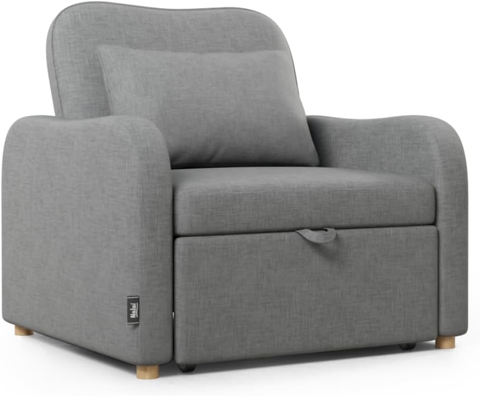 Nalui-Sofá Cama 1 Plaza 3 en 1 Buddy 92x97x90cm con Respaldo Ajustable 2 Posiciones y Almohada. Sofá Cama Individual de Lino, Soporta hasta 200Kg. Sillón Relax Reclinable con Reposabrazos, Marengo