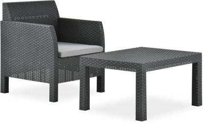 Chusui Set de Muebles jardín 2 Piezas con cojín, Set De Jardin, Set Exterior Jardin, Muebles Terraza Exterior, Conjunto Muebles Jardin Exterior, Sofa Jardin Terraza, PP ratán Gris Antracita