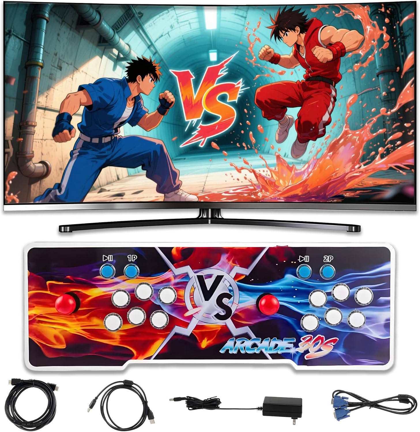 Consola de Juegos Retro 36800 Juegos en 1, Juegos de Vídeo Plug Play, Incluye Conector de Audio de 3,5 mm y Altavoces de 2 Clavijas, Admite hasta 4 Jugadores Llamas Rojas y Azules