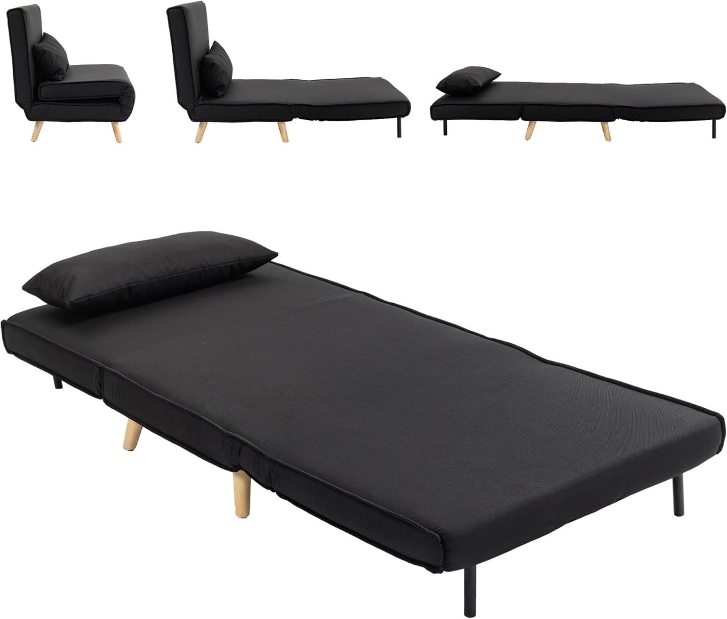 HOMCOM Sofá Cama Individual 3 en 1, Sillón Cama Plegable con Respaldo Ajustable en 6 Posiciones, Asiento Amplio, Almohada Acolchada, Patas de Madera, Carga 350 kg, 94x78x80 cm, Negro