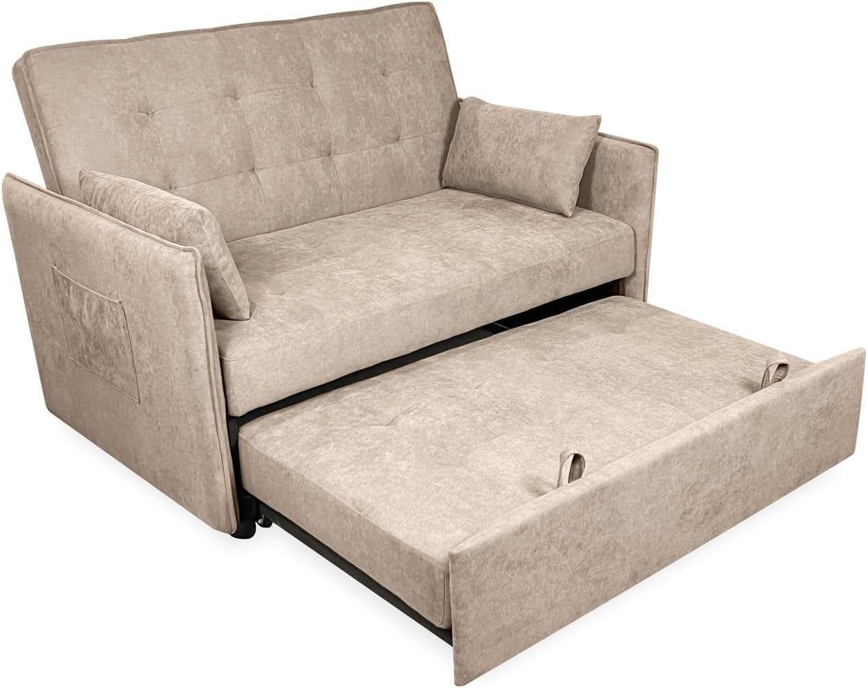 Homey - Sofá Cama de 2 Plazas Modelo Zumaia, Diseño Moderno, Práctico y Funcional, con Cojines Decorativos, Fácil Apertura, Beige