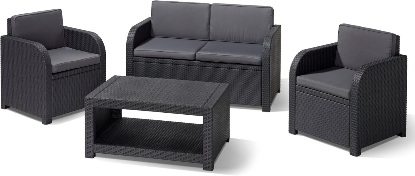 Keter Allibert 192738 Modena - Salón de jardín ratán sintético, Color Gris
