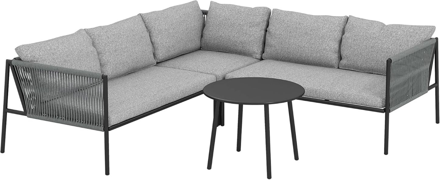 Outsunny Conjunto Jardín Exterior de Ratán con Cojines Conjunto Terraza Resistente a la Intemperie Muebles Jardín Exterior con 2 Sofás de 2 Plazas Sofá Esquina Mesa Redonda Gris Oscuro