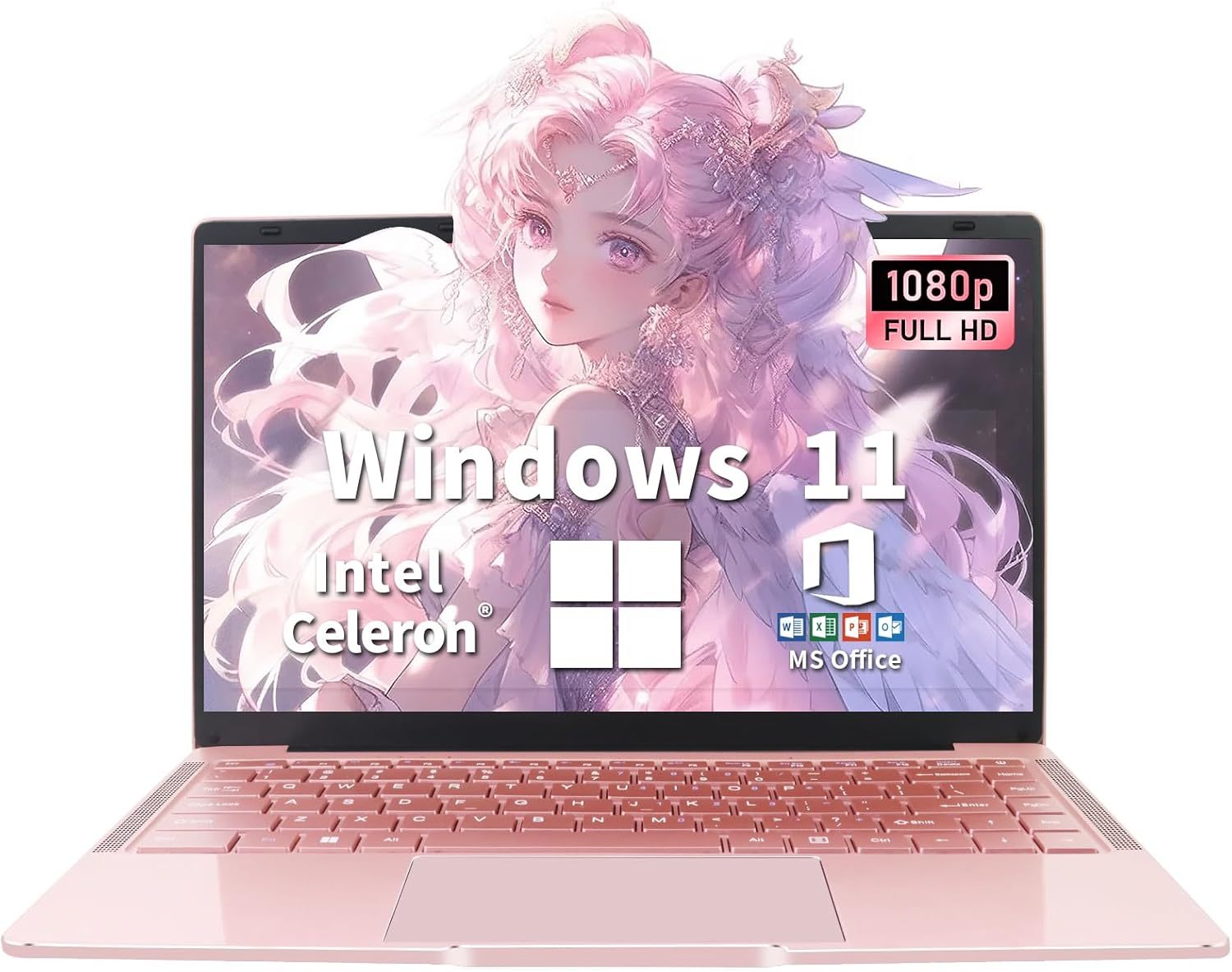 Portátil de 14 Pulgadas, Ultrabook con 8 GB DDR4, Pantalla IPS 1920 x 1080, Celeron N4120 Core hasta 2.6 GHz, USB 3.0, Notebook ultradelgado con Oro Rosa, 8 256G SSD