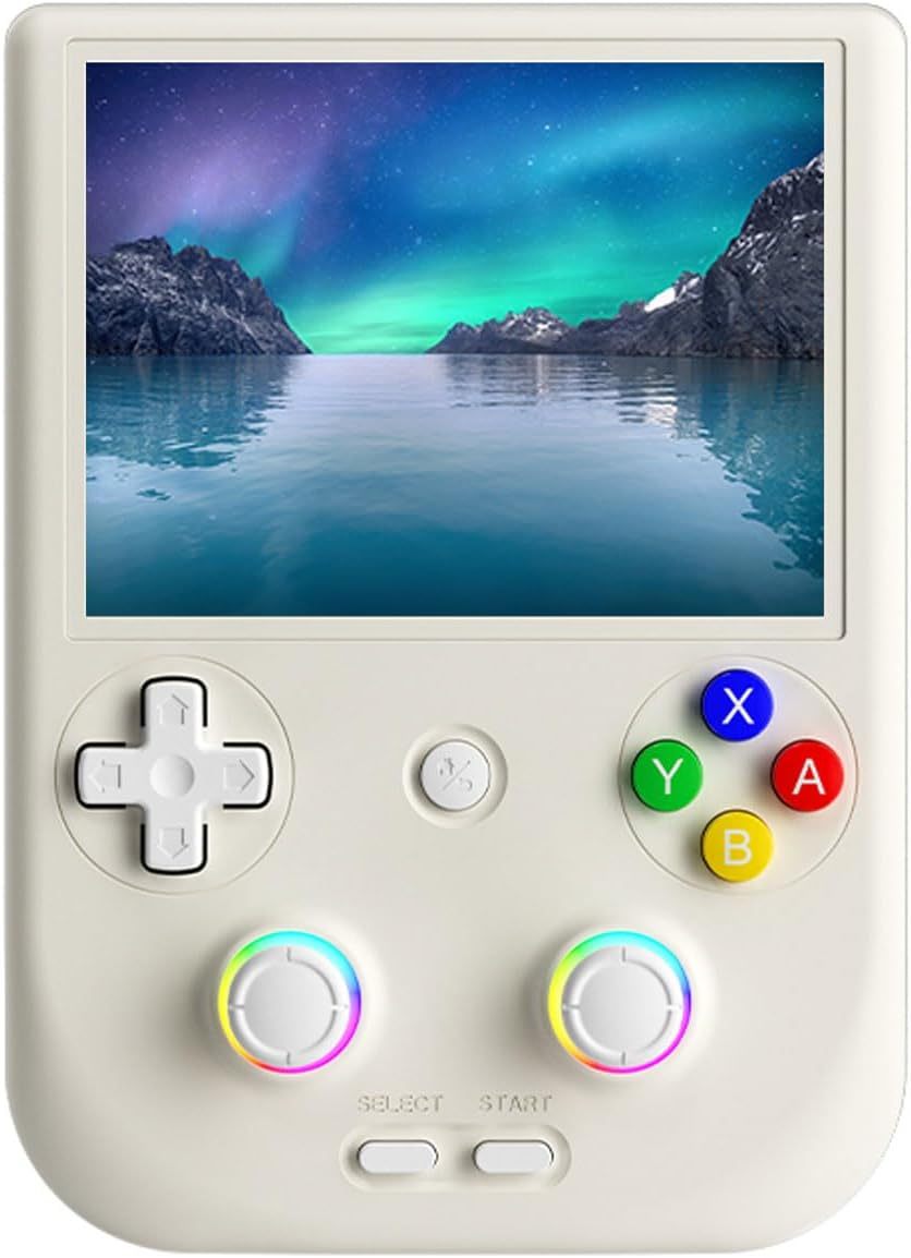 RG406V - Consola de juegos de mano retro, Android 13 OS, tarjeta TF de 128 G, consola de videojuegos retro, pantalla IPS de 4.0 pulgadas, reproductor de video portátil de bolsillo beige blanco