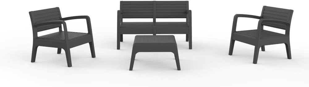 SP Berner - Set de Muebles de Jardín y Terraza Miami Color Grafito - Sofá 2 Plazas, 2 Sillones y Mesa de Centro - Fabricado en España con Plástico Reciclado