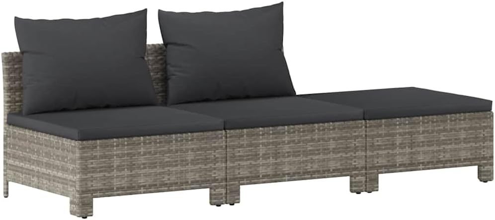 vidaXL Set de Muebles de jardín 3 pzas y Cojines ratán sintético Gris, Juego de Muebles de jardín, Muebles de Exterior, Juego de sofás