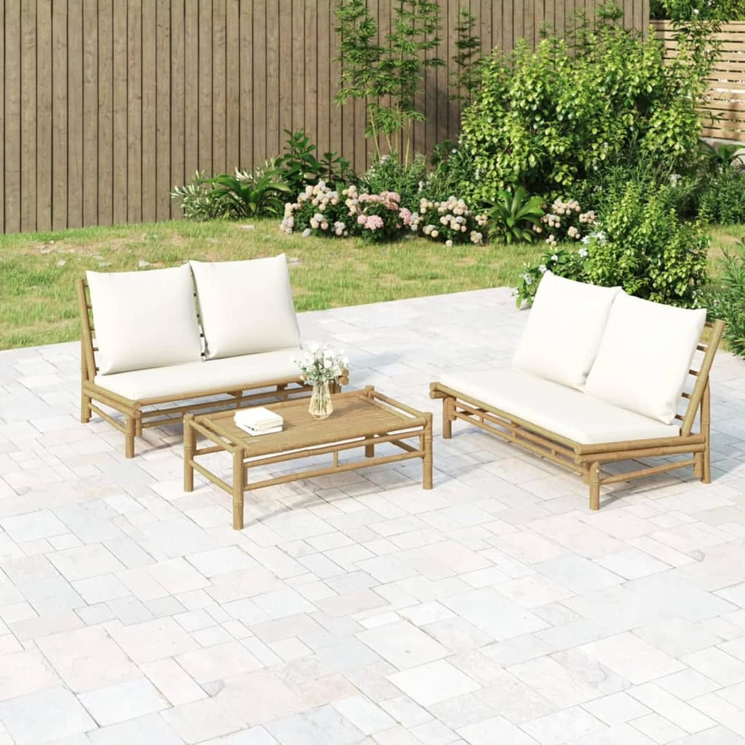 ZEYUAN Set de Muebles de jardín 2 Piezas bambú y Cojines Blanco Crema, Conjunto Jardin Exterior, Muebles Jardin Exterior, Conjunto Terraza, Terraza Exterior Chill out, Garden Furniture 363454